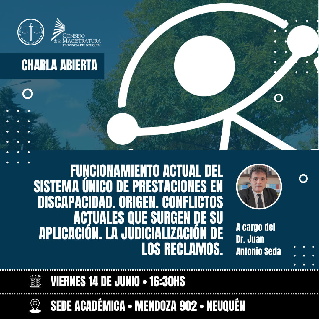 Los invitamos a la charla abierta “Funcionamiento actual del sistema único de prestaciones en discapacidad. Origen. Conflictos actuales que surgen de su aplicación. La judicialización de los reclamos”. A cargo del Dr. Juan Antonio Seda.